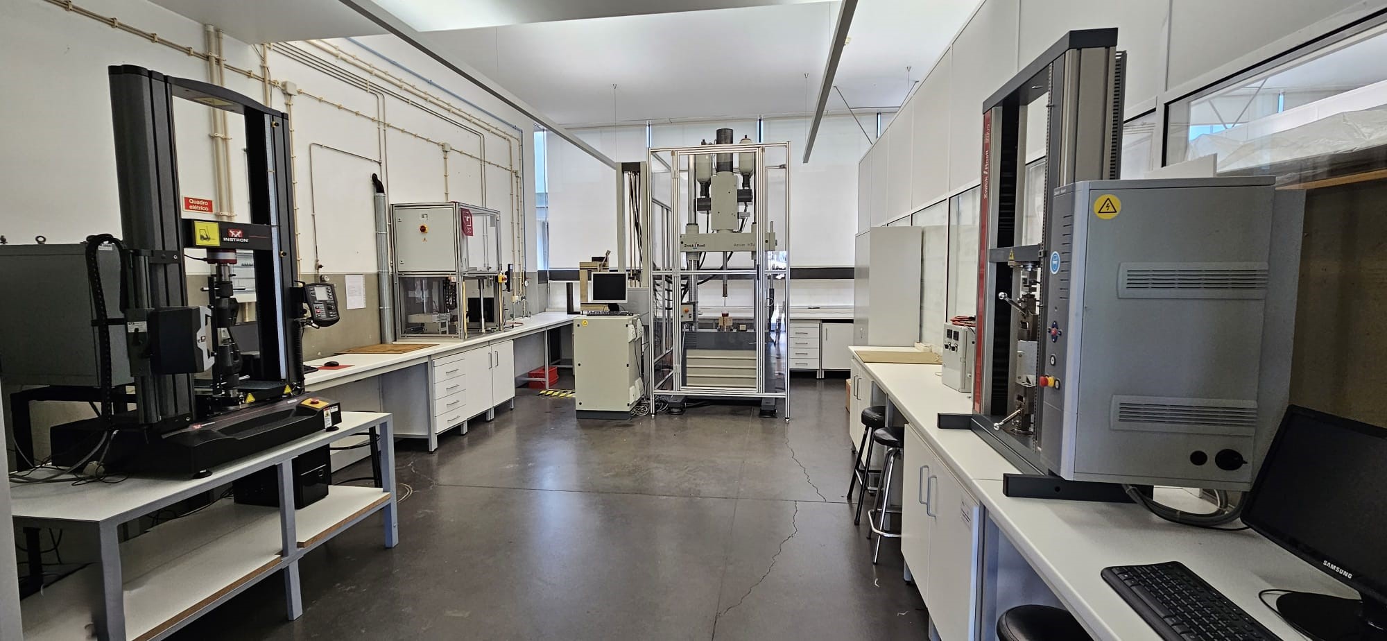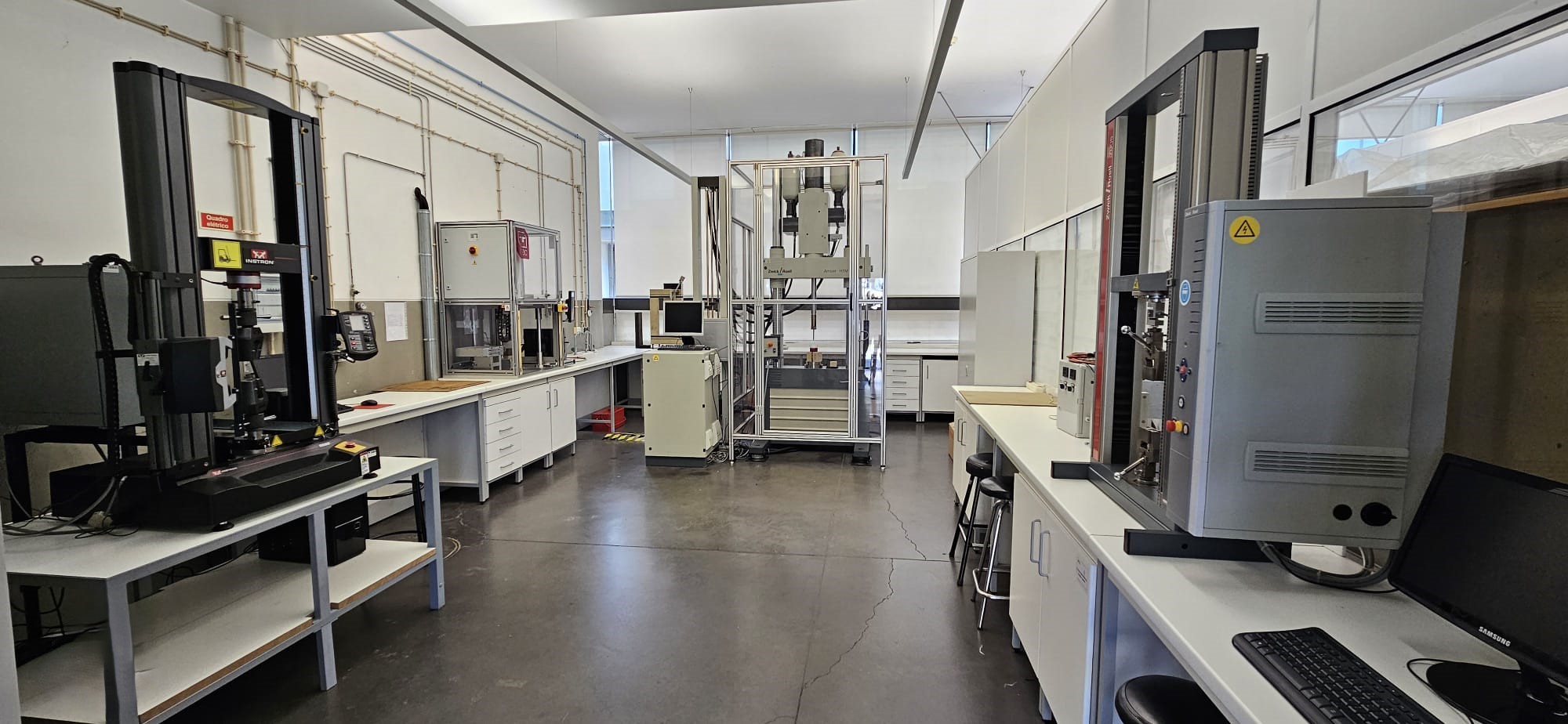 Laboratório para realização de ensaios mecânicos, incluindo teste de tração, variação, flexão, tração/ impacto de alta velocidade, impacto pendular e atrito.